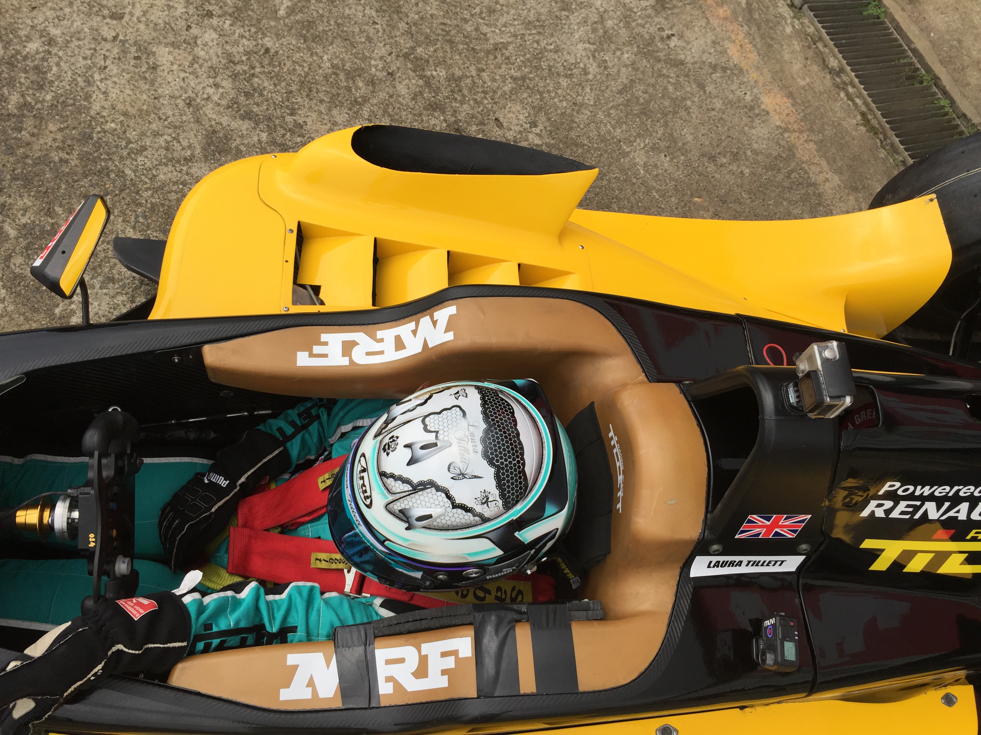 - Laura racing the MRF Car at Bahrain